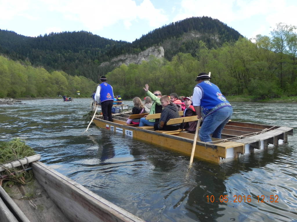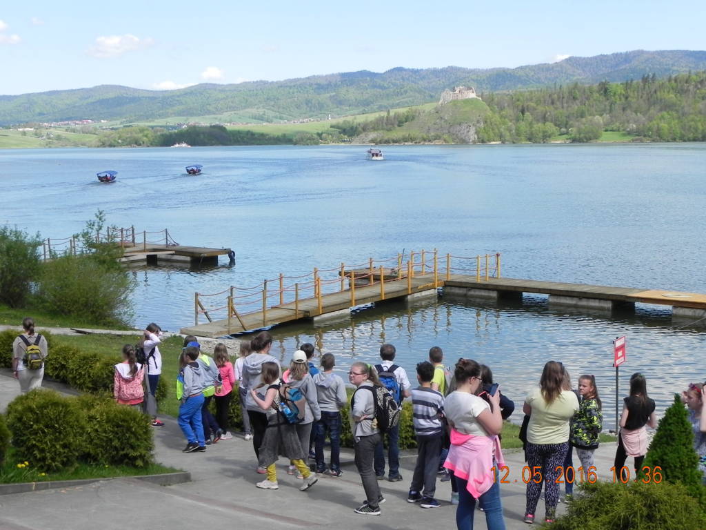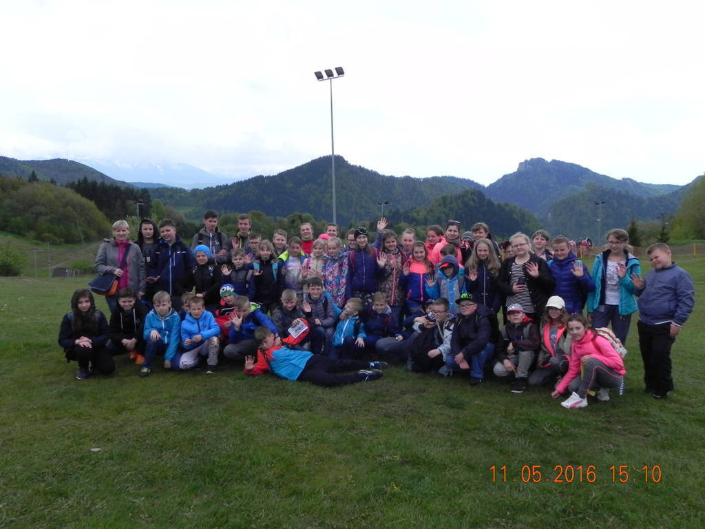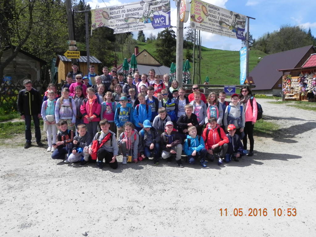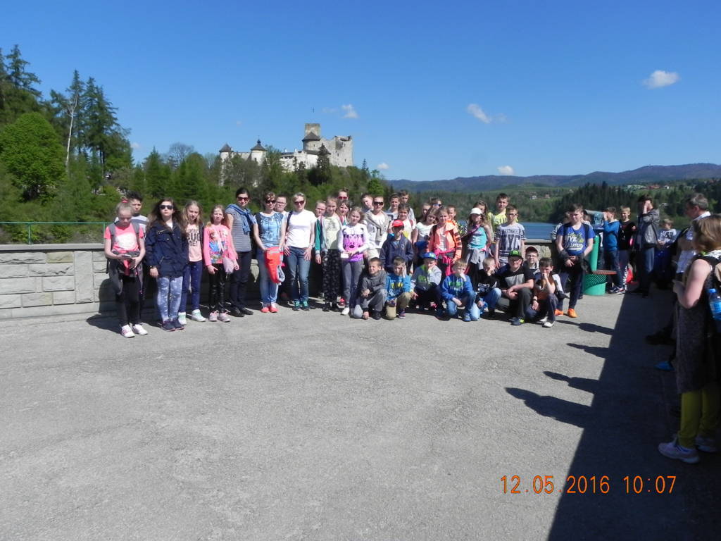 10 maja uczniowie klas IV a, IV b, V, VI a, VI b pod opieką p. Urszuli Stefańskiej, p. Agnieszki Kawalec, p. Agaty Kuźdub i p. Małgorzaty Tarabasz wyjechali na trzydniową wycieczkę w Pieniny. Po kilku godzinach podróży dojechaliśmy do miejscowości Sromowce Wyżne, skąd odbył się spływ Dunajcem do Szczawnicy. Podczas spływu podziwialiśmy piękny górski krajobraz. Po dwóch godzinach dotarliśmy na miejsce, gdzie mieliśmy chwilę czasu na zakup pamiątek. Zmęczeni udaliśmy się do Pensjonatu Nowak w miejscowości Łapsze Niżne na obiadokolację. Po zakwaterowaniu mieliśmy czas na odpoczynek i zregenerowanie sił. Następnego dnia pojechaliśmy do Jaworek, aby obejrzeć niezwykle urokliwy wąwóz Homole. Dowiedzieliśmy się, że przez cały wąwóz płynie rzeka Kamionka, która w wielu miejscach tworzy głazowiska skalne i malutkie wodospady, które pięknie się prezentują na tle wzniesień. Po krótkim przystanku przy Kamiennych Księgach, gdzie według legendy zapisane są losy świata, udaliśmy się w dalszą wędrówkę do bacówki na Polanie. Tam mieliśmy czas na podziwiane krajobrazów Beskidu Sądeckiego i zabawę.W godzinach popołudniowych wjechaliśmy kolejką na Palenicę. Po powrocie do Pensjonatu odbyła się dyskoteka. Trzeciego dnia po śniadaniu pożegnaliśmy Łapsze Niżne i pojechaliśmy do Niedzicy, gdzie znajduje się zapora ziemna dzięki której powstał sztuczny zbiornik wodny na Dunajcu Zalew Czorsztyński. W drodze powrotnej zwiedziliśmy gotycki, drewniany kościół parafialny w Dębnie Podhalańskim w powiecie nowotarskim, wpisany wraz z innymi drewnianymi kościołami południowej Małopolski na listę światowego dziedzictwa. UNESCO. Po kilku godzinach podróży byliśmy już w Mirowie, gdzie na każdego ucznia czekali stęsknieni rodzice. Wycieczka była bardzo udana. Wróciliśmy zmęczeni, ale bardzo zadowoleni.