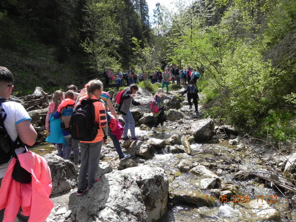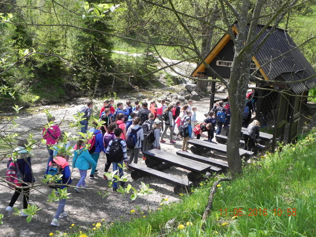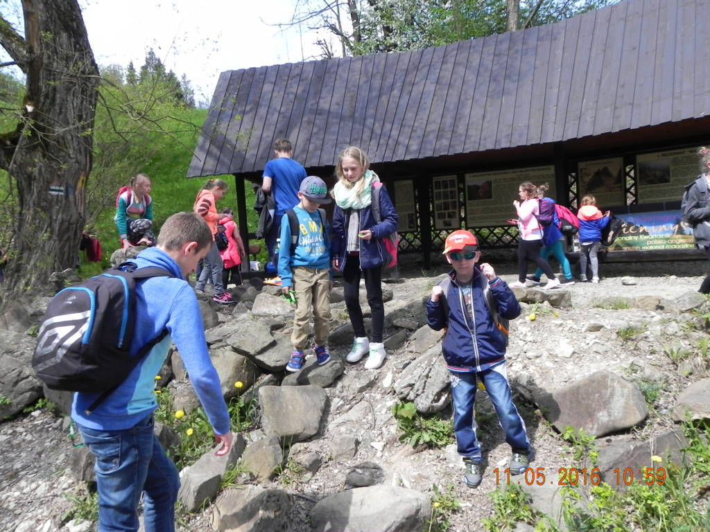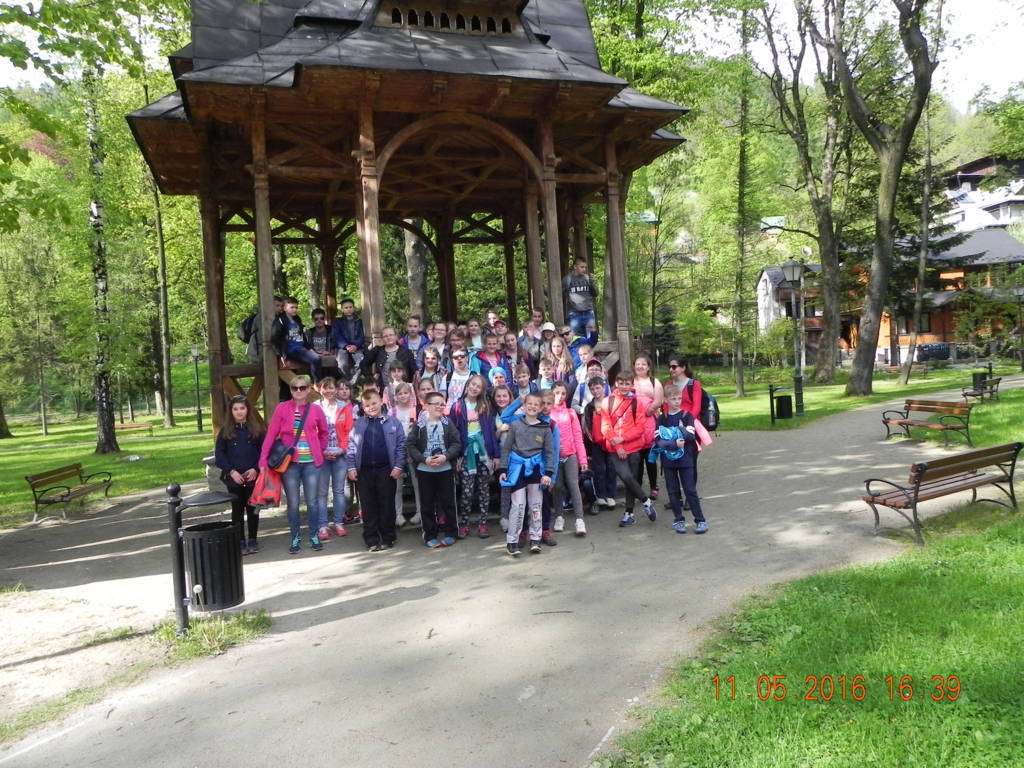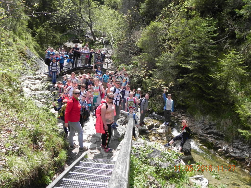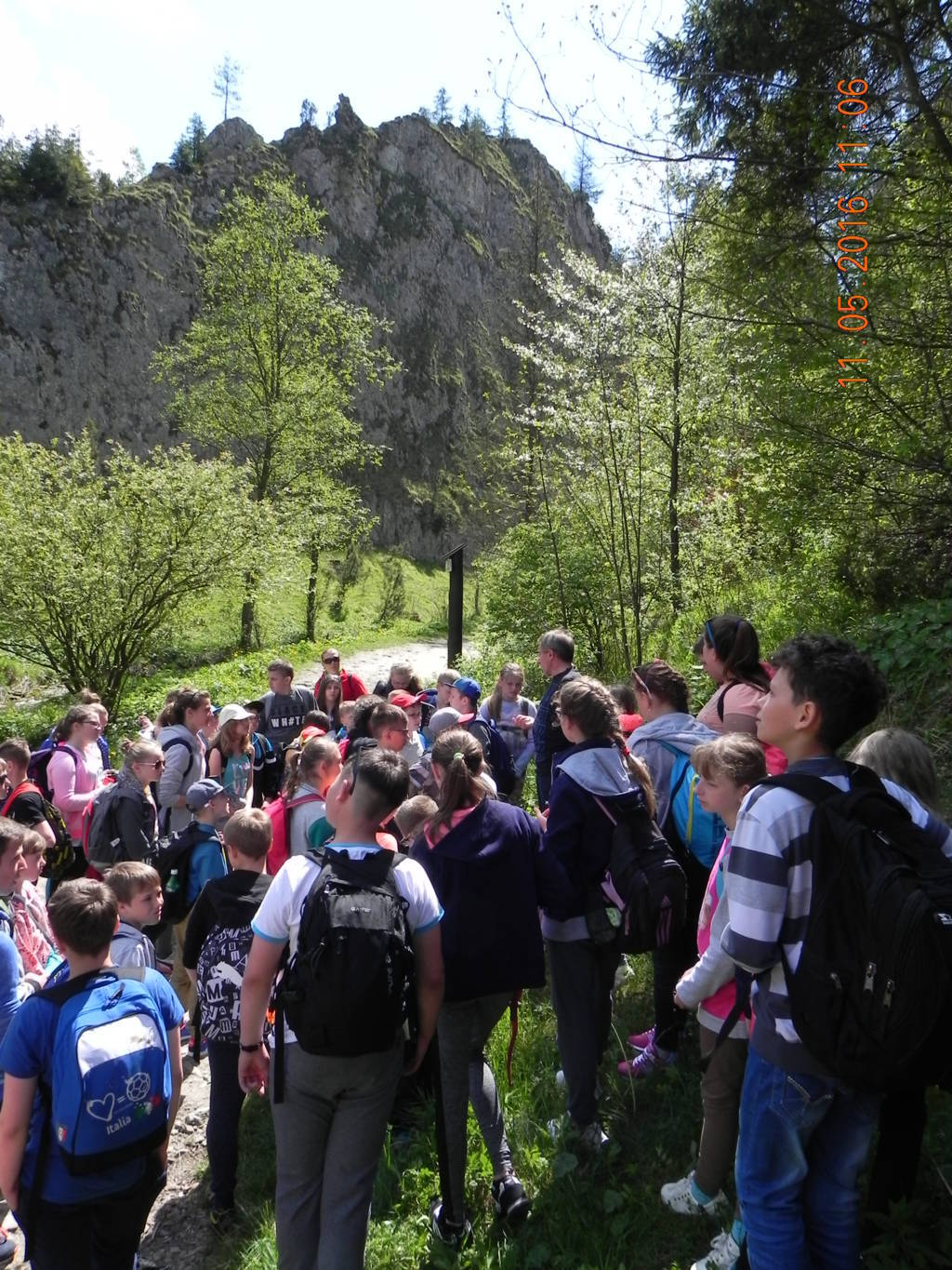 10 maja uczniowie klas IV a, IV b, V, VI a, VI b pod opieką p. Urszuli Stefańskiej, p. Agnieszki Kawalec, p. Agaty Kuźdub i p. Małgorzaty Tarabasz wyjechali na trzydniową wycieczkę w Pieniny. Po kilku godzinach podróży dojechaliśmy do miejscowości Sromowce Wyżne, skąd odbył się spływ Dunajcem do Szczawnicy. Podczas spływu podziwialiśmy piękny górski krajobraz. Po dwóch godzinach dotarliśmy na miejsce, gdzie mieliśmy chwilę czasu na zakup pamiątek. Zmęczeni udaliśmy się do Pensjonatu Nowak w miejscowości Łapsze Niżne na obiadokolację. Po zakwaterowaniu mieliśmy czas na odpoczynek i zregenerowanie sił. Następnego dnia pojechaliśmy do Jaworek, aby obejrzeć niezwykle urokliwy wąwóz Homole. Dowiedzieliśmy się, że przez cały wąwóz płynie rzeka Kamionka, która w wielu miejscach tworzy głazowiska skalne i malutkie wodospady, które pięknie się prezentują na tle wzniesień. Po krótkim przystanku przy Kamiennych Księgach, gdzie według legendy zapisane są losy świata, udaliśmy się w dalszą wędrówkę do bacówki na Polanie. Tam mieliśmy czas na podziwiane krajobrazów Beskidu Sądeckiego i zabawę.W godzinach popołudniowych wjechaliśmy kolejką na Palenicę. Po powrocie do Pensjonatu odbyła się dyskoteka. Trzeciego dnia po śniadaniu pożegnaliśmy Łapsze Niżne i pojechaliśmy do Niedzicy, gdzie znajduje się zapora ziemna dzięki której powstał sztuczny zbiornik wodny na Dunajcu Zalew Czorsztyński. W drodze powrotnej zwiedziliśmy gotycki, drewniany kościół parafialny w Dębnie Podhalańskim w powiecie nowotarskim, wpisany wraz z innymi drewnianymi kościołami południowej Małopolski na listę światowego dziedzictwa. UNESCO. Po kilku godzinach podróży byliśmy już w Mirowie, gdzie na każdego ucznia czekali stęsknieni rodzice. Wycieczka była bardzo udana. Wróciliśmy zmęczeni, ale bardzo zadowoleni.