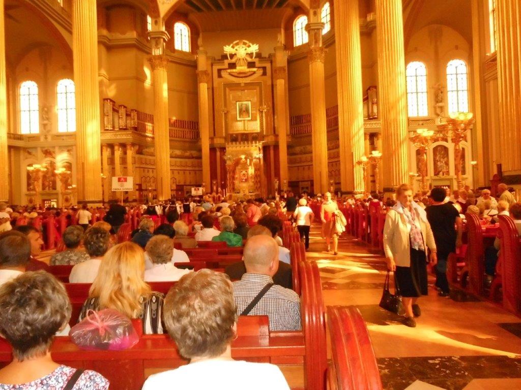 W niedzielę przy dźwiękach orkiestry dętej przeszliśmy w barwnym korowodzie do licheńskiej bazyliki, gdzie o godzinie 12 uczestniczyliśmy we mszy świętej. Po Eucharystii zwiedzaliśmy Sanktuarium w towarzystwie przewodnika. Spotkanie zakończyło się wspólnym odmówieniem koronki do Miłosierdzia Bożego w kaplicy Trójcy Św. oraz odśpiewaniem „Barki” przy pomniku św. Jana Pawła II.