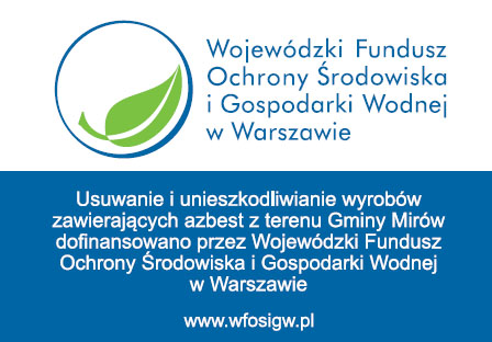 Dzięki pozyskanemu dofinansowaniu z Wojewódzkiego Funduszu Ochrony Środowiska i Gospodarki Wodnej w Warszawie Gmina Mirów zrealizowała program bezpłatnego odbioru wyrobów zawierających azbest. Łącznie w 2016 roku płyty azbestowe odebrane zostały od trzydziestu mieszkańców gminy zainteresowanych udziałem w projekcie.Wykonawcą przedmiotowej usługi było Przedsiębiorstwo Wielobranżowe „JAWA” s. c. ze Starachowic. Zakres prac obejmował w szczególności odbiór od mieszkańców, transport i utylizację na uprawnionym do przyjęcia odpadów niebezpiecznych składowisku odpadów zawierających azbest.