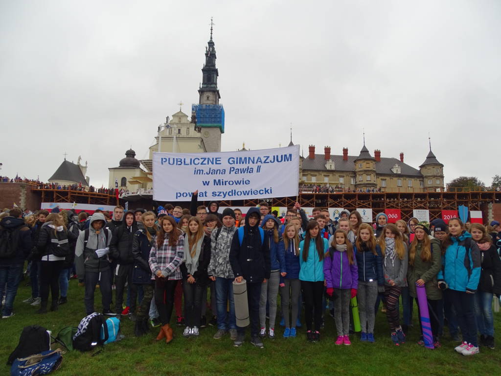 Dnia 13 października 2016 r. uczniowie Publicznego Gimnazjum im. Jana Pawła II wzięli udział w XVI Ogólnopolskiej Pielgrzymce Rodziny Szkół im. Jana Pawła II na Jasnej Górze. W tym roku była ona pod hasłem Jan Paweł II – Bądźcie Świadkami Miłosierdzia. Uroczysta Msza Święta została odprawiona pod przewodnictwem Księdza Bp. Henryka Tomasika. Wzięło w niej udział około 20 tysięcy uczniów ze szkół im. Jana Pawła II z całej Polski jak również z zagranicy. Za wstawiennictwem Matki Bożej Królowej Polski modliliśmy się w intencjach Ojca Świętego Franciszka, podziękowaliśmy za pontyfikat św. Jana Pawła II, prosiliśmy o miłosierdzie dla siebie, każdego człowieka i całego świata. Wyjazd na pielgrzymkę zorganizowały panie Marta Piętek i Krystyna Książek z opiekunami: p. Bożeną Pałką, p. Anetą Radwańską i ks. Markiem Senderowskim.