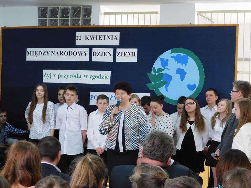 25 kwietnia 2016 roku w Publicznym Gimnazjum w Mirowie odbyła się uroczysta akademia z okazji Międzynarodowego Dnia Ziemi. Młodzież naszej szkoły przygotowała montaż słowno – muzyczny, w którym zaprezentowała szeroko rozumiane pojęcie ekologii i ochrony środowiska, zwracając szczególną uwagę na problem ochrony powietrza i segregację śmieci. Nasi uczniowie poprzez pięknie zaśpiewane piosenki i wyrecytowane wiersze mówili na wesoło, ale także bardzo poważnie na temat szeroko rozumianej ekologii. Tę piękną uroczystość przygotowali uczniowie klasy I b, a pomogli im koledzy i koleżanki z klasy II a i III b. Uroczystość uświetnili swoją obecnością zaproszeni goście: Wójt Gminy Mirów Pan Artur Siwiorek, Przewodnicząca Rady Powiatu Pani Anita Gołosz oraz Inspektor oświaty Piotr Kowalik, a także pan J. Gromek przewodniczący Komisji Oświaty. Po występie uczniów gimnazjum głos zabrali zaproszeni goście, a później pan wójt i pani dyrektor wręczyli nagrody w konkursie geograficznym i w konkursach polonistycznych. Na zakończenie uroczystości Pani dyrektor Marzanna Błach, podziękowała za przygotowanie uroczystości uczniom i opiekunom, pani Bożenie Pałce, pani Kindze Pacek i panu Arkadiuszowi Gilarskiemu, a szanownym gościom podziękowała za przybycie i uświetnienie uroczystości oraz za ufundowanie nagród w konkursach przedmiotowych, a także za udział w akademii.
