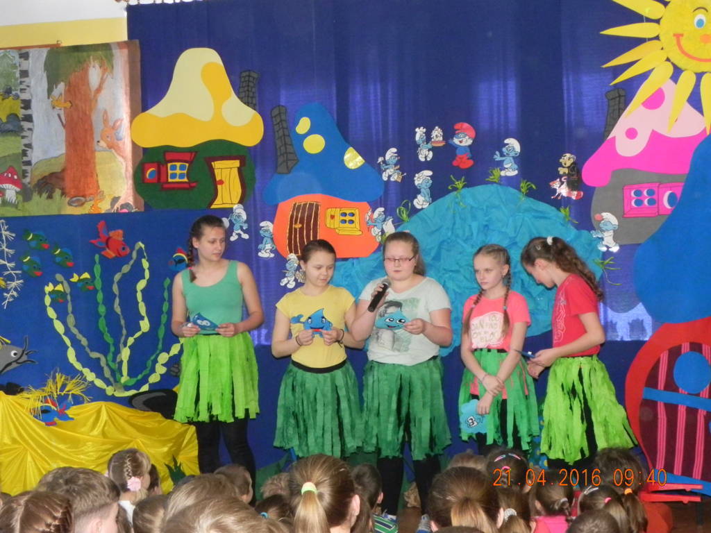 Woda źródłem życia to nazwa imprezy, która odbyła się w naszej szkole w dniu 21.04.2016r. Uczniowie klas VI wprowadzili nas w tematykę wody. Opowiedzieli nam jak ważną rolę w życiu odgrywa dla nas woda. Swoje przemówienia wzbogacili filmami multimedialnymi, z których dowiedzieliśmy się co robić by nie marnować tej życiodajnej substancji. Następnie na scenie pojawiła się klasa III, która przeniosła nas w magiczne miejsce zwane wioską smerfów. W przepięknej, bajkowej scenerii, wzbogaconej piosenkami i prezentacją multimedialną uczniowie odegrali przedstawienie pt. Smerfy nad Iłżanką poruszając tematykę zanieczyszczania wód oraz pokazali jak zbudować oczyszczalnie wody.Na koniec nastąpiło uroczyste wręczenie dyplomów za udział w konkursie Woda to życie, w którym uczniowie otrzymali nagrody od przewodniczącej rady powiatu szydłowieckiego Anity Gołosz.Wszyscy zrozumieli znaczenie wody w życiu człowieka i potrzebę oszczędnego nią gospodarowania.