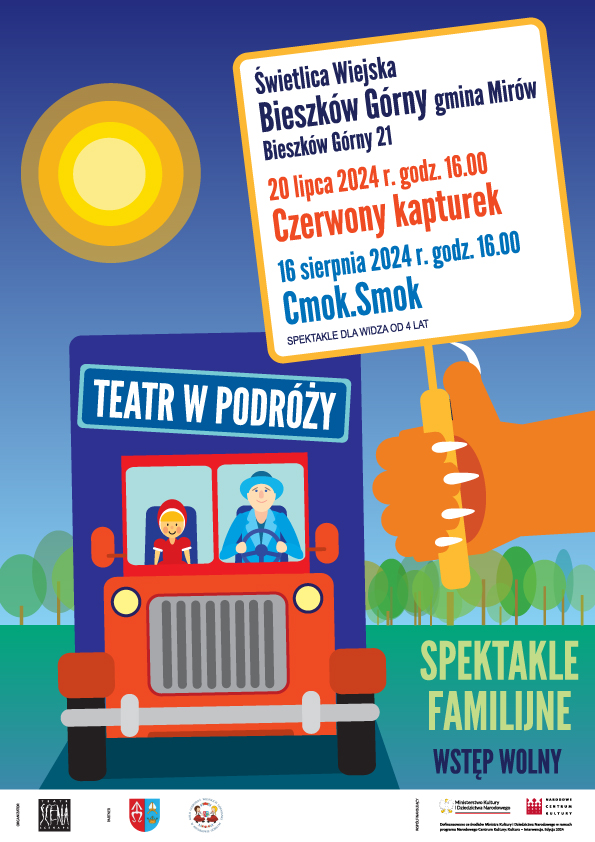 W dniu 20 lipca 2024 r do świetlicy wiejskiej w Bieszkowie Górnym w ramach realizacji programu „Teatr w podróży” zawitał teatr Scena 96.