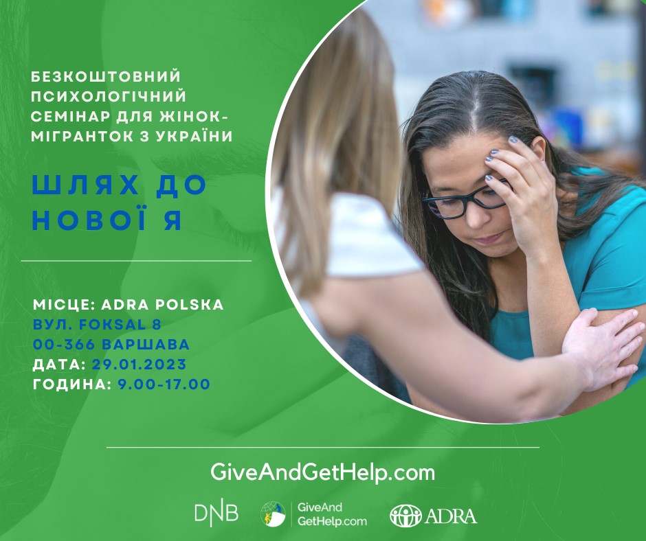 Warsztat dla kobiet pt. „Droga do nowej siebie” poprowadzą pochodzące z Ukrainy psycholożki z platformy HelpUkraine.GiveAndGetHelp.com, zapewniającej bezpłatne wsparcie psychologiczne i informacyjne przymusowym migrantom z Ukrainy.