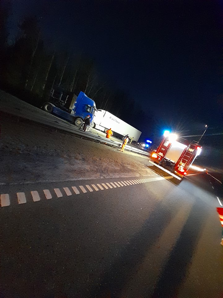 W poniedziałek, 14 lutego we wczesnych godzinach rannych w okolicach Kielc doszło do zderzenia dwóch pojazdów ciężarowych. W wyniku zdarzenia lekkich obrażeń ciała doznał jeden z kierujących pojazdem. W tym samym czasie obok miejsca zdarzenia przejeżdżali druhowie z Ochotniczej Straży Pożarnej w Rogowie.