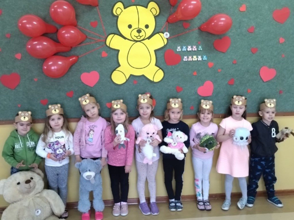 Uroczysty dzień rozpoczął się od poznania historii powstania pluszowego misia, następnie dzieci opowiadały o swoich maskotkach, bawiły się przy piosenkach, brały udział w różnych zabawach, quizach oraz wykonywały prace plastyczne. Dzień Pluszowego Misia był pełen uśmiechu i świetnej zabawy.