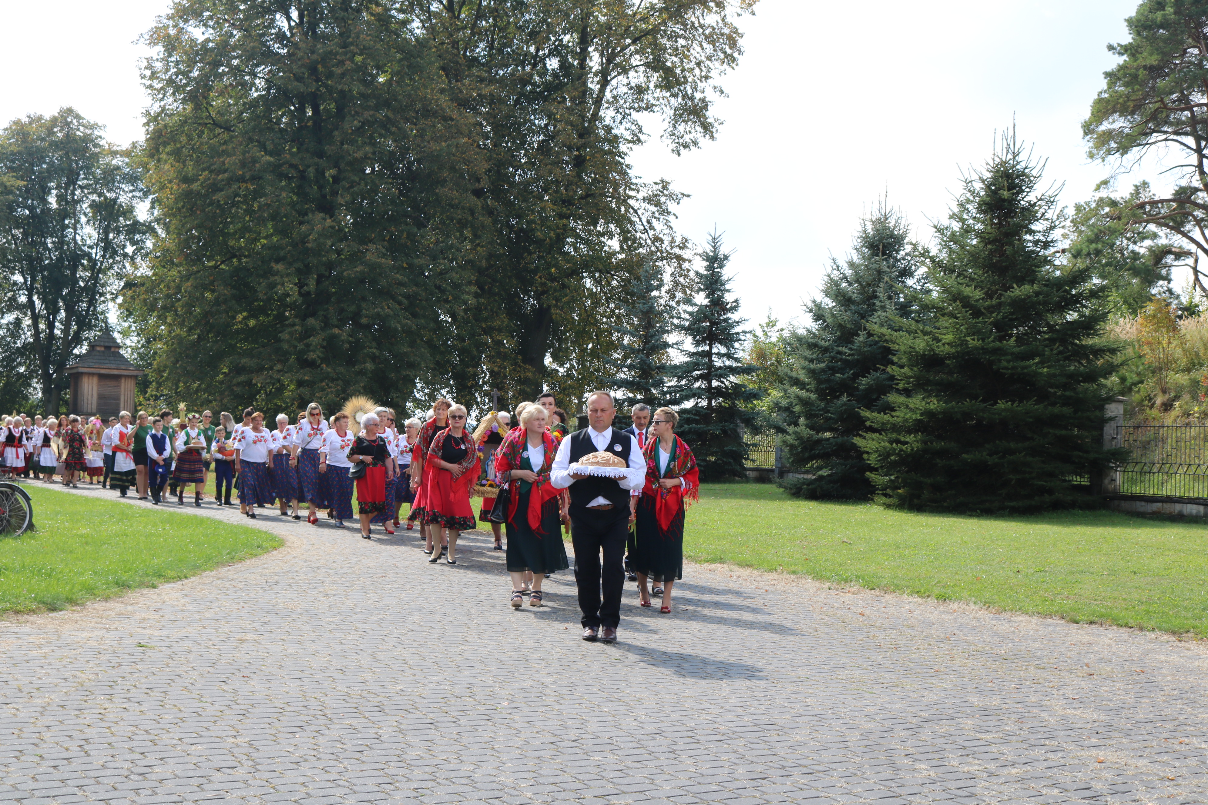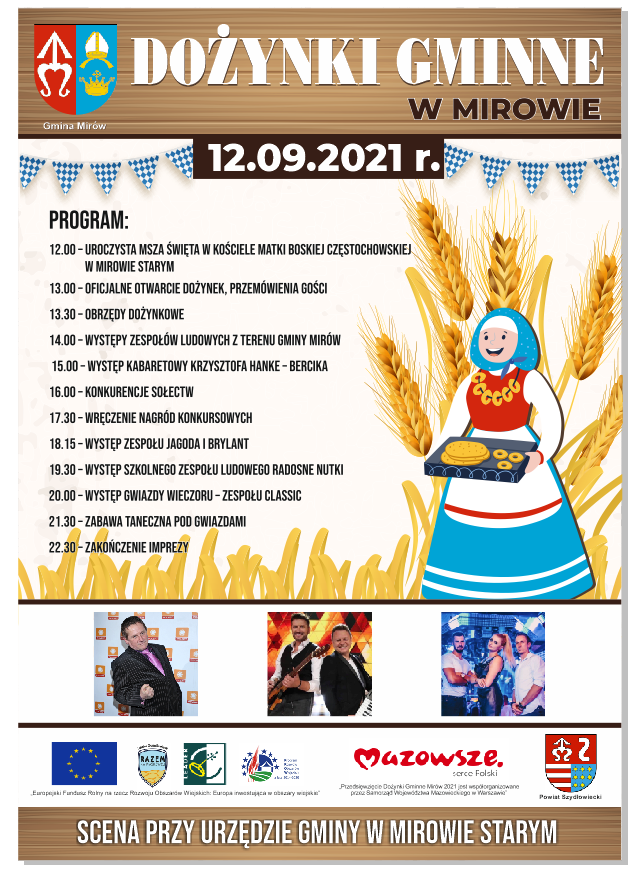 Uroczystości dożynkowe rozpoczęły się mszą świętą w kościele parafialnym w Mirowie Starym. Po zakończeniu nabożeństwa orszak dożynkowy przemieścił się w okolicę sceny przy Urzędzie Gminy Mirów.