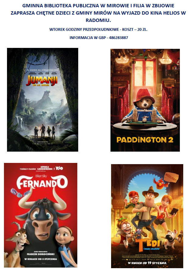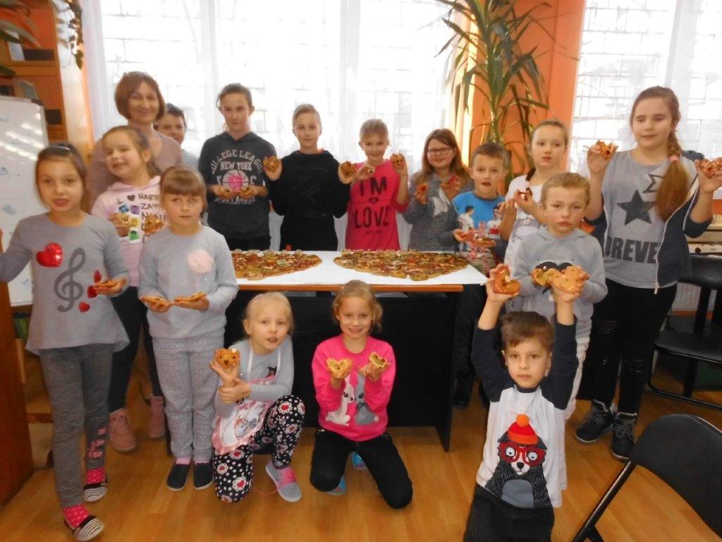 ,,Piernikowe serce dla Babci i Dziadka” pod takim hasłem upłynęły ferie 2018 w Gminnej Bibliotece Publicznej w Mirowie i filii bibliotecznej w Zbijowie Małym. Dzień Babci i Dziadka przypadł w naszym województwie w środku ferii zimowych, dlatego też powstał pomysł, aby dzieci pod kierunkiem pań z bibliotek wypiekały i dekorowały pierniczki. Na początku przygotowano odpowiednie makiety, na których najmłodsi wyklejali upieczone piernikowe serca. Następnie kolorowymi pisakami i czekoladową polewą pięknie je dekorowali. Na spotkaniach pomagały panie z aktywu wiejskiego oraz zespołów ludowych naszej gminy: