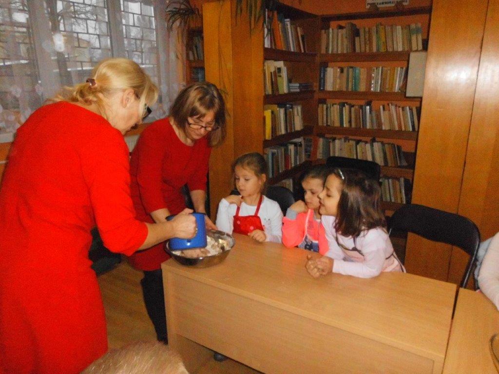 Piątego grudnia w Gminnej Biblioteki Publicznej w Mirowie było gwarno i mikołajkowo. Sprawiły to warsztaty wypiekania pierniczków, na które przybyły dzieci z klas pierwszych PSP w Mirowie ze swoimi wychowawcami. Przed przystąpieniem do pracy uczestnicy umyli ręce i założyli fartuszki. Poznali też składniki, sposób wykonania pierników oraz zasady bezpieczeństwa. Gdy ciasto było gotowe dzieci wygniatały, formowały i wycinały foremką wzór piernikowego Mikołaja.