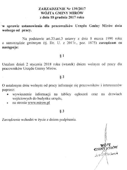 życzymy Wszystkim Mieszkańcom Gminy Mirów,