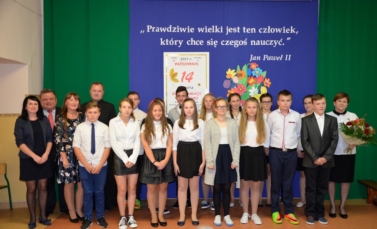„Prawdziwie wielki jest ten człowiek, który chce się czegoś nauczyć”- to słowa Jana Pawła II, które przyświecały uroczystym obchodom Dnia Edukacji Narodowej w Publicznej Szkole Podstawowej z oddziałami przedszkolnymi w Bieszkowie Dolnym, które miały miejsce 12 października 2017r.
